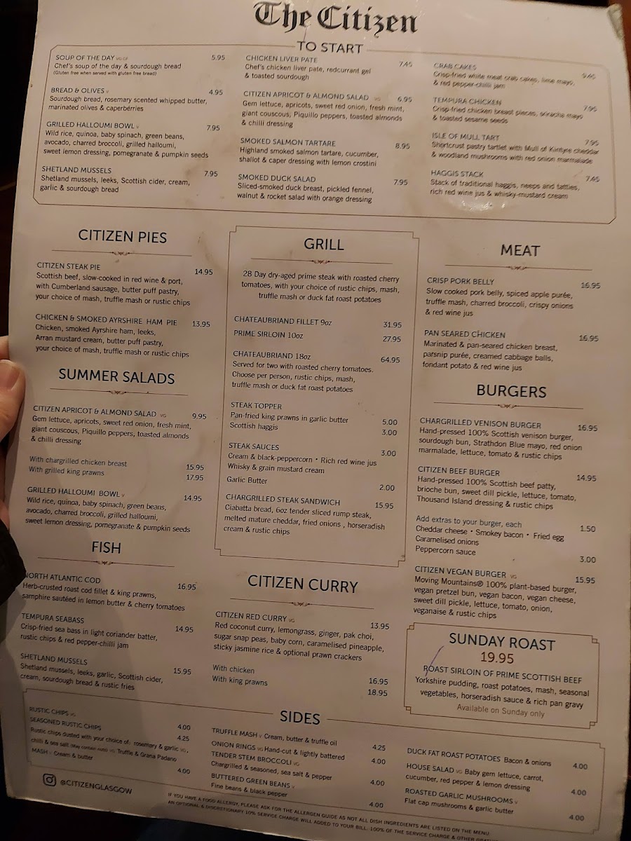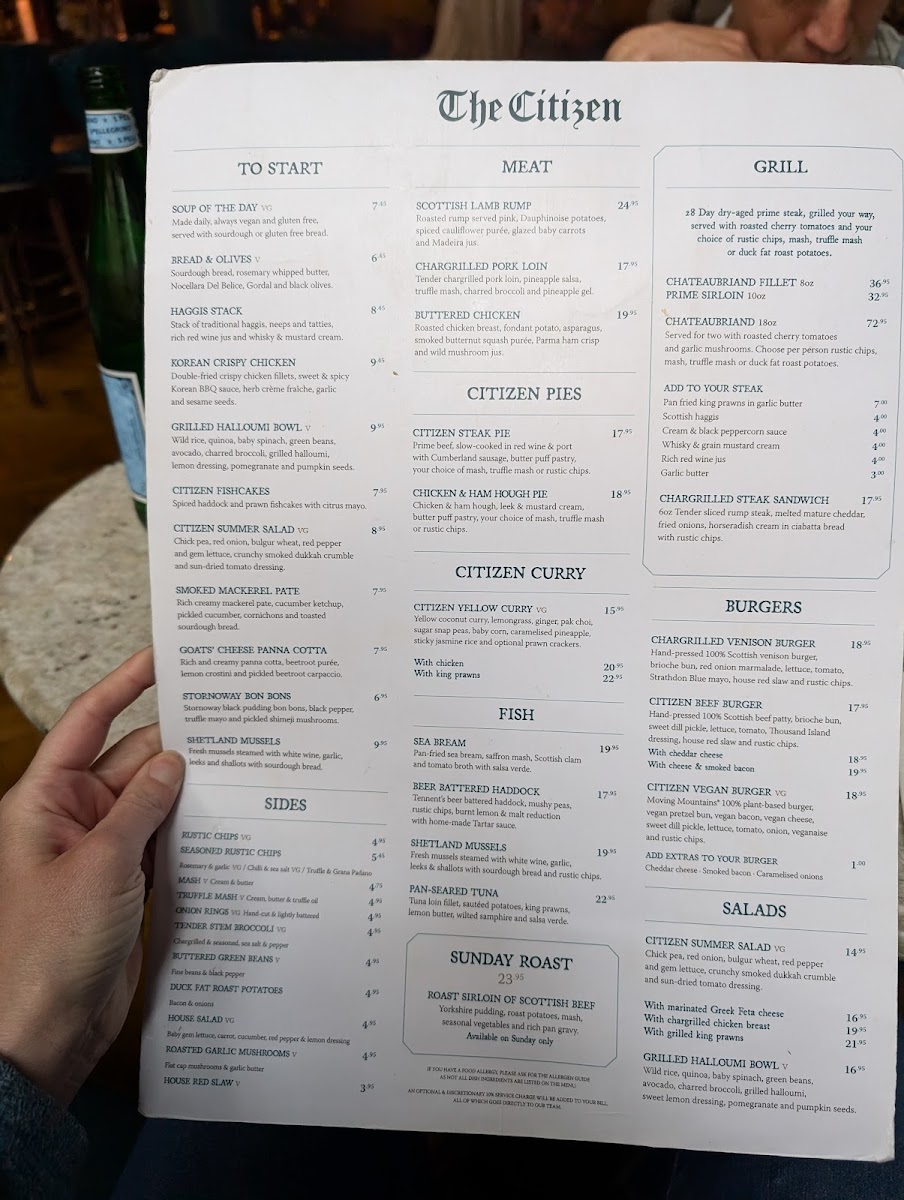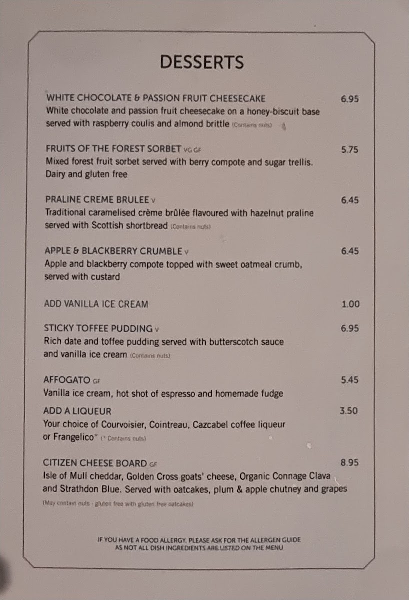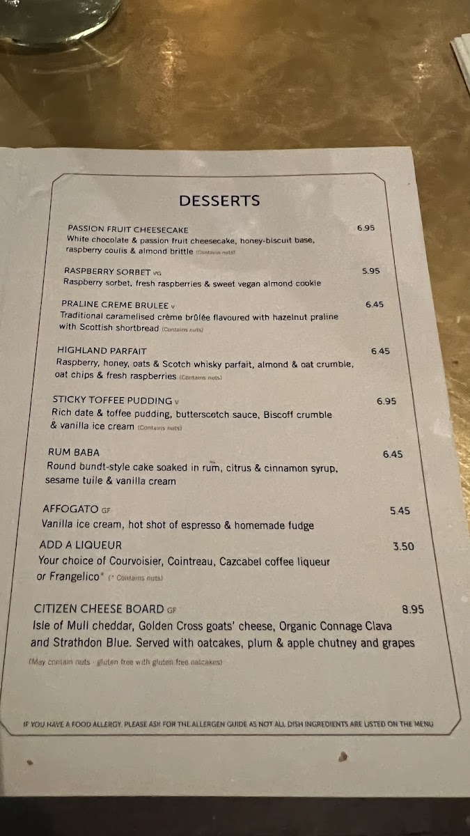 Indulge your sweet tooth with delightful desserts, from the decadent chocolate and Bailey’s cheesecake to the classic Scottish cheese board. With attentive staff and a charming ambiance, The Citizen Glasgow promises a dining experience that is both delicious and unforgettable.